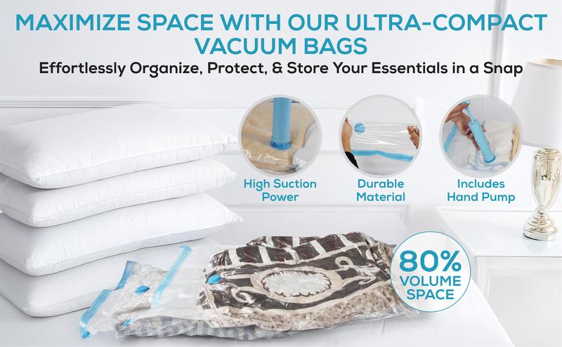 (Combo Set )Vacuum Storage Bags with Hand Pump - Space Saver Vacuum Seal Bags for Clothing - Space Saving Solution for Home Organization - Durable and Efficient Vacuum Storage Bags