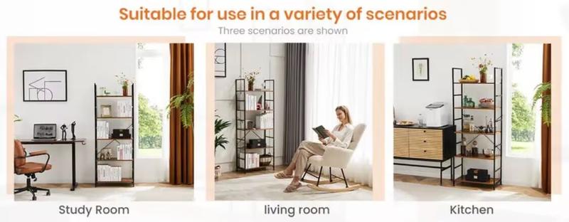 - 【Multiple Usage Scenarios】The simple and fashionable exterior design complements various home styles, making your 5 tier bookshelf not onlyaplacetostore,butalsoadecoration, adding an artistic atmosphere to your space. Perfectly fit with living room, bedroom, study, entrance, hallway, office, etc.