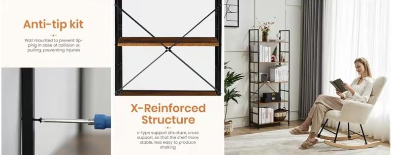 - 【Anti-tip Kits & Easy Assembly】The beautiful bookcase comes with an anti-tipping tool, please mount this tool on the wall for better stability and less unexpected injuries. You can easily complete the installation of the 5 shelf bookcase according to the installation video we provide. Quick and easy to assemble, so you can enjoy the convenience of your new bookshelf immediately.